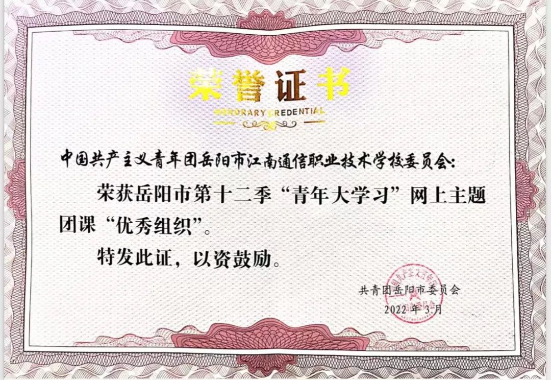 我校榮獲岳陽(yáng)市第十二季“青年大學(xué)習(xí)”網(wǎng)上主題團(tuán)課優(yōu)秀組織獎(jiǎng)